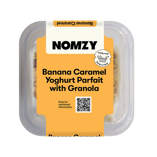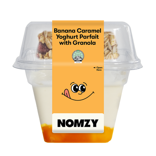 NOMZY Banana Caramel Yoghurt Parfait with Granola