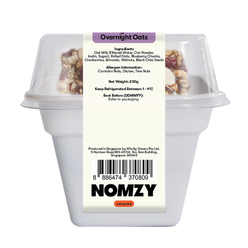 Ingredients: Oat Milk (Filtered Water, Oat Powder, Inulin, Sugar), Rolled Oats, Blueberry Chunks, Cranberries, Almonds, Walnuts, Black Chia Seeds